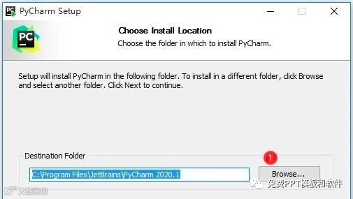 ①点击【Browse...】更改软件的安装目录。默认安装的目录:C:\Program Files\JetBrains\Pycharm 2020.1