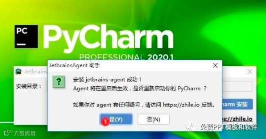 6、显示安装【jetbrains-agent 成功】,点击【是】重启软件,即可激活完成。