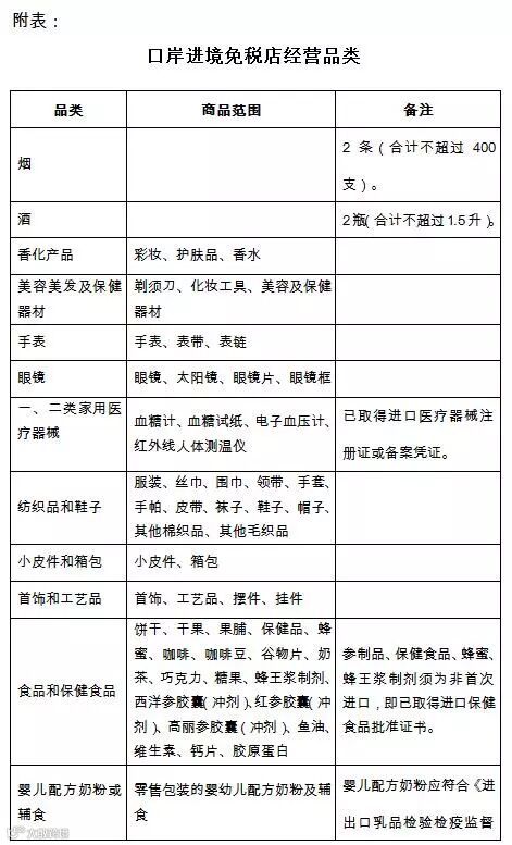 经国务院同意,此次决定在广州白云、杭州萧山、成都双流、青岛流亭、南京禄口、深圳宝安、昆明长水、重庆江北、天津滨海、大连周水子、沈阳桃仙、西安咸阳和乌鲁木齐地窝堡等机场口岸,深圳福田、皇岗、沙头角、文锦渡口岸,珠海闸口口岸,黑河口岸等水陆口岸各设1家口岸进境免税店。