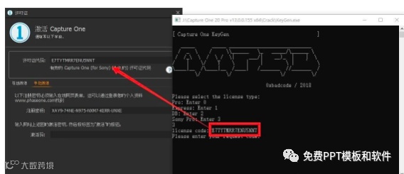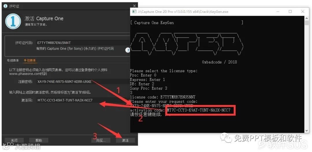 ②在KeyGen注册机中生成【激活码】,复制到 Capture One 激活码栏中。