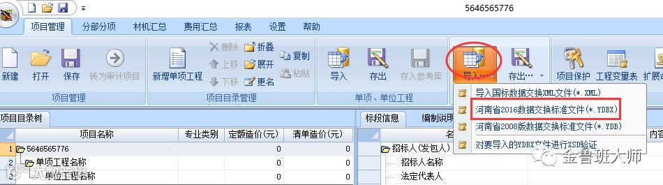 1,新建一个空白项目,导入YDBX清单,第一个提示,是否转为金鲁班取费,点是。
