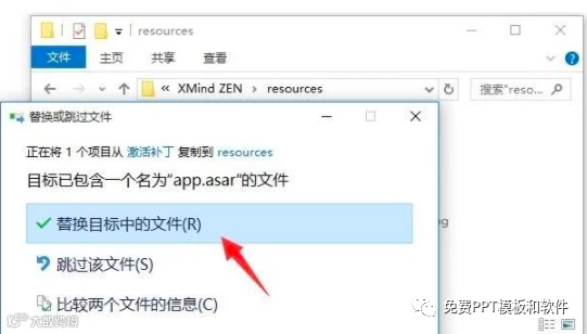 6、点击选更替目标中的文件】,XMind ZEN 2020 即可完成激活。