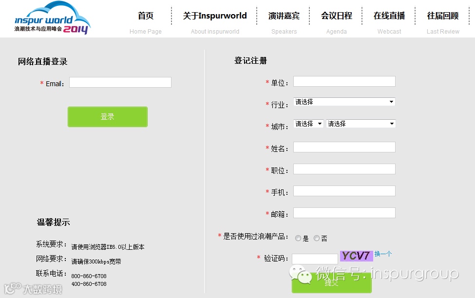 ①PC:登录浪潮官网→Inspur World 2014专题→在线直播