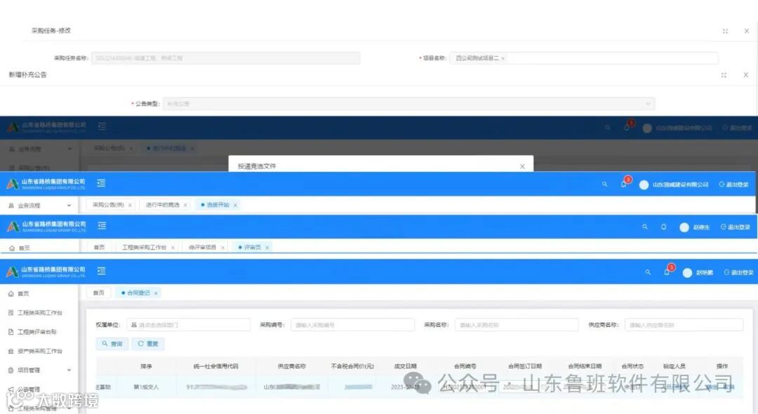 为积极响应政府号召,加快建筑行业数字化转型步伐,我司在广泛调研多家企业后,于2022年与业界领先的山东省路桥集团有限公司(以下简称“山东路桥”)携手,共同研发了一套全流程数字化采购平台。