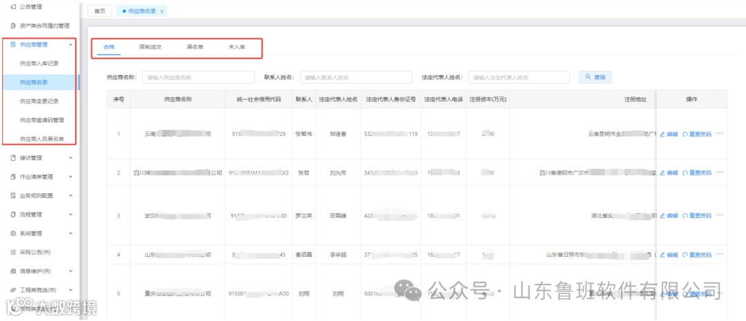 涵盖基本信息、评价、人员、设备、业绩,为选择供应商提供参考依据