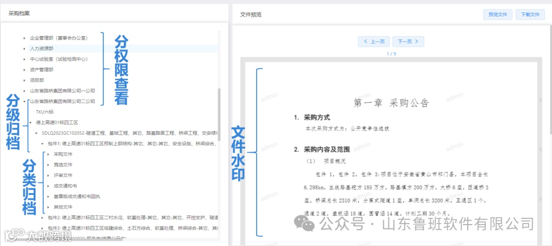 自动按照年份、公司、项目、采购环节等多维度分类,方便查阅下载