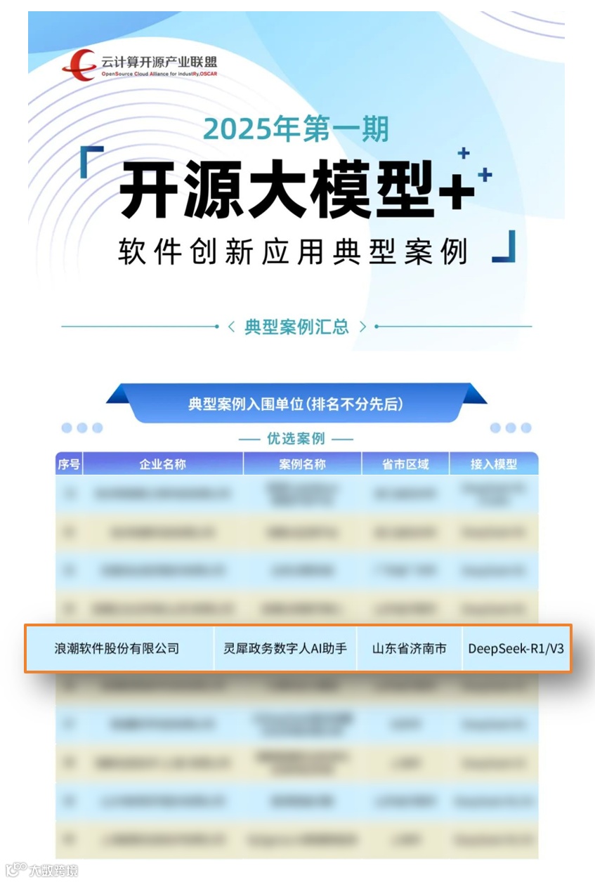 近日,中国信通院正式公布“开源大模型+”软件创新应用典型案例入围名单,浪潮软件提报的政务AI产品“灵犀政务数字人AI助手”(简称“灵犀助手”)成功入选,是全国50家、山东4家入选单位之一。