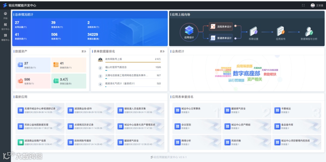 天工开务:一款专为政企业务、开发人员提供的低代码开发平台,致力于简化应用开发过程,实现简单应用零代码开发,复杂应用低代码开发。“天工开务” 具备全栈动态建模、集成开放、多屏合一、多模设计、组件工厂等特性,提供表单、流程、网页、仪表板、报表、权限等可视化设计器,能够快速响应用户需求,缩短开发周期,降低成本的同时提高产品质量和系统稳定性。