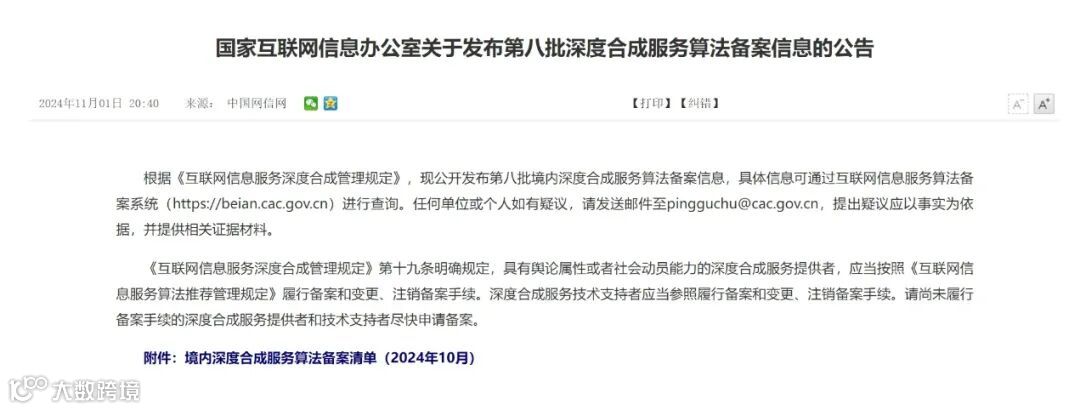 11月1日,国家网信办发布第八批境内深度合成服务算法备案信息,浪潮软件研发的“浪潮灵犀有言文本生成算法”顺利通过备案。此次备案通过标志着灵犀有言开放场景大模型在数据安全、隐私保护及算法公正性方面均达到了行业高标准。