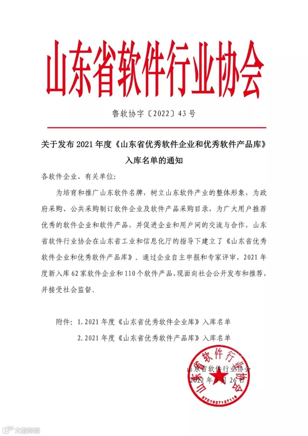 近日,山东省软件行业协会发布2021年度《山东省优秀软件企业和优秀软件产品库》入库名单,通过企业自主申报和专家评审,2021年度新入库62家软件企业和110个软件产品。浪潮软件入库2021年度山东省优秀软件企业库,“浪潮软件V6物流管控系统”、“浪潮软件V6移动送货系统”两个软件产品入库2021年度山东省优秀软件产品库。