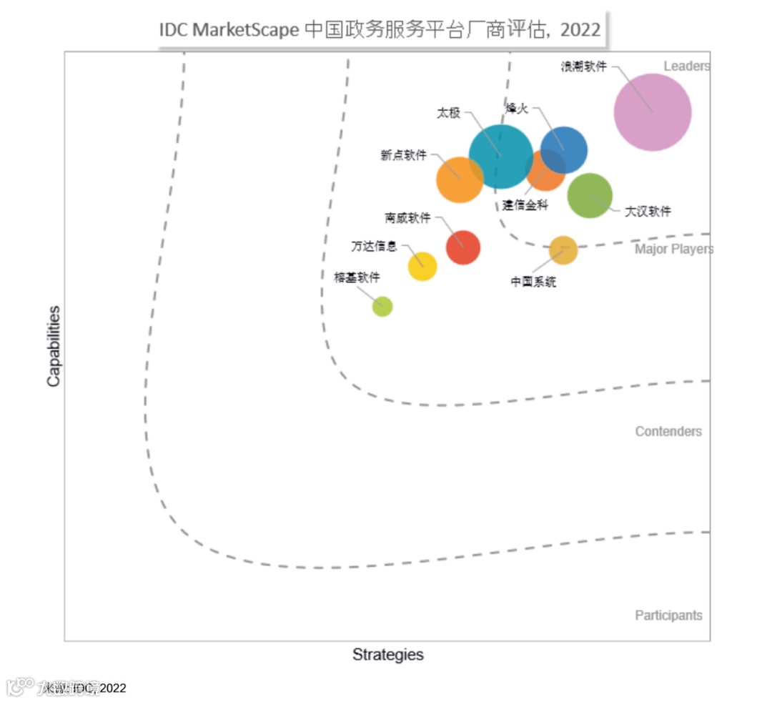 浪潮软件集团日前,国际数据公司(IDC)发布《IDC MarketScape: 中国政务服务平台 2022 年厂商评估》。评估报告显示,浪潮集团旗下浪潮软件股份有限公司稳居中国政务服务平台厂商领导者象限。