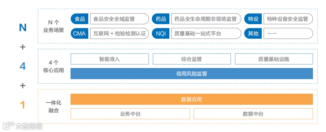 作为市场监管行业数字化转型领域的领军企业,历经近二十年的发展,浪潮软件紧靠国家市场监管总局信息化建设技术方案的总体要求,牢固树立“大市场、大质量、大监管”理念,打造 1+4+N 产品体系,以一体化平台为支撑,以信用监管为基础,构建“智能准入、综合监管、质量基础设施”等核心应用,围绕食品安全全域监管、药品全生命周期非现场监管、特种设备安全监管、互联网 + 检验检测认证等N个业务场景塑造典型案例,赋能市场监管行业数字化、智慧化转型。