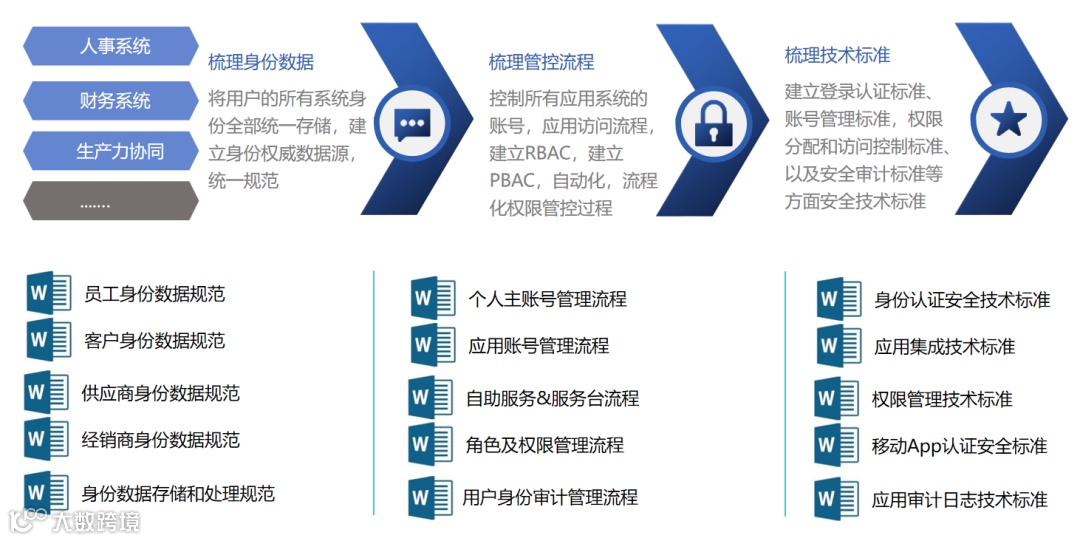 基于利旧准则,在摸清企业已有身份数据与管理情况后,结合企业实际数字身份管理要求,为后续制定数字身份治理与管理的规范制度做好数据调研基础。
