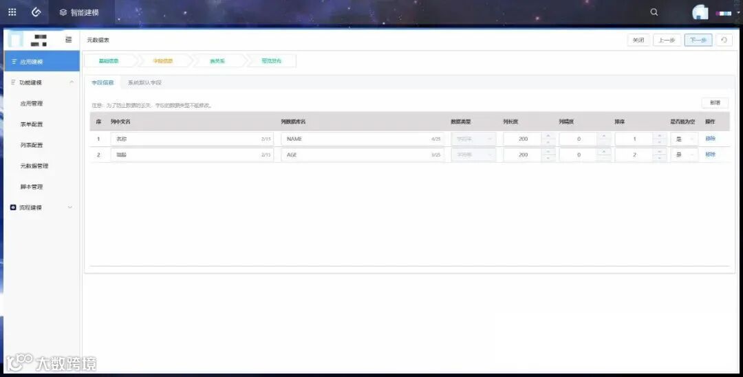 应用所需元数据的创建支持直接导入、手工输入,也支持先导入再进行手工调整等多种编辑方式,方便用户导入、整理所需元数据。
