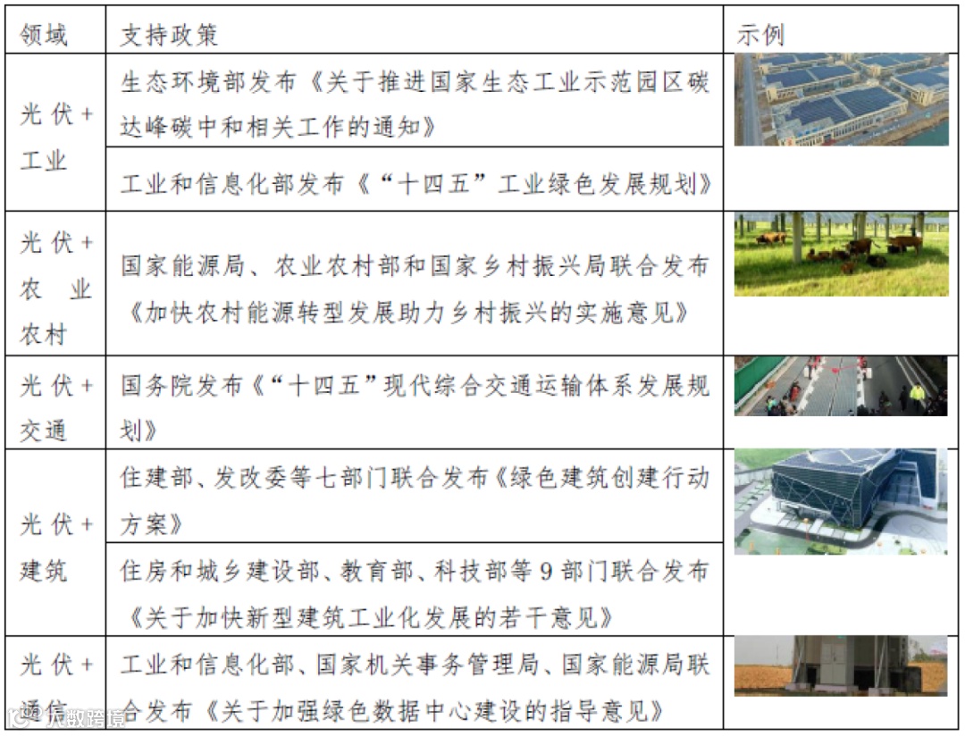 除了国家层面的政策引导,从省级规划到县市都在“十四五”的相关规划与指导意见中明确提出了光伏+的模式偏好。据不完全统计,全国超过15个省市地区在光伏管理政策中提出了光伏+相关的标准与要求,云南、江苏、河南、甘肃、海南、四川、浙江以及杭州、浦江、桐乡等省/市/县,均提出鼓励光伏电站与产业园区、学校、农业大棚、鱼塘水面、采煤塌陷区等相结合,不断探索更多的“光伏+”应用场景。
