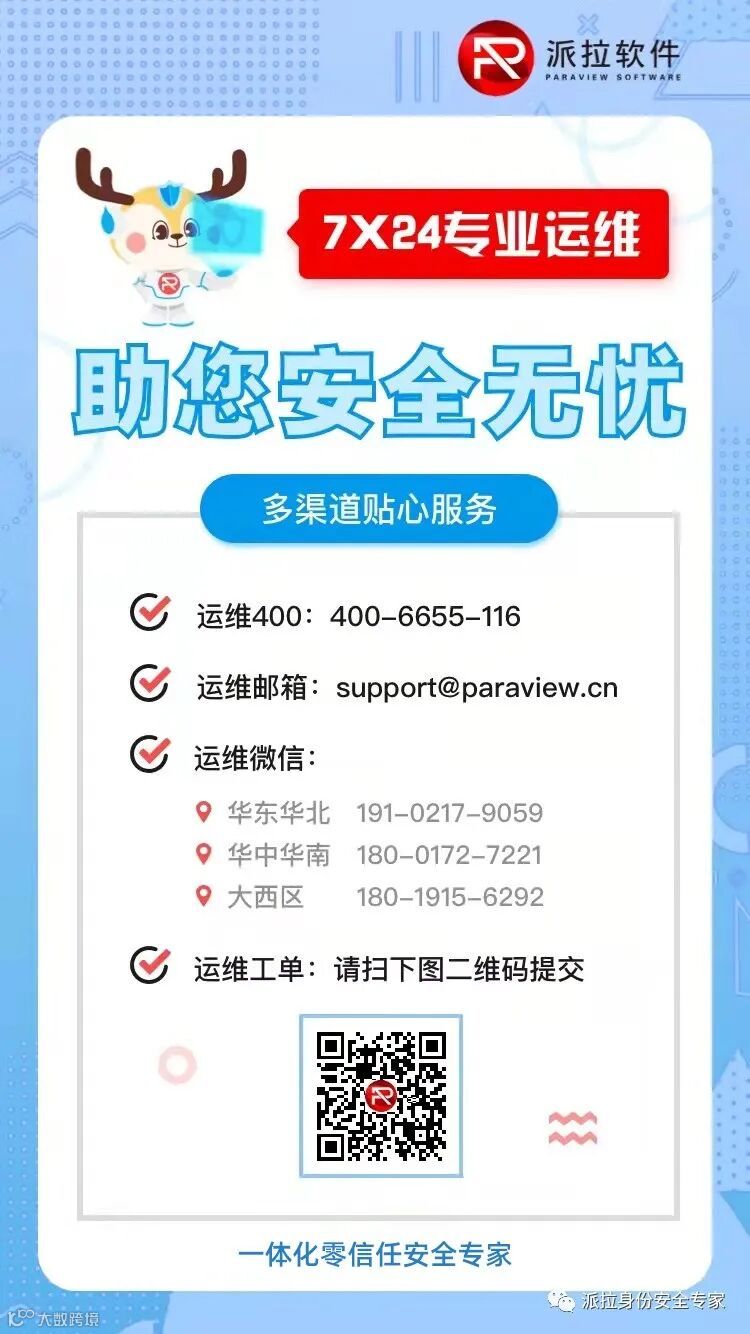 疫情防控期间,公司各部门一如既往,坚持以客户为中心,提供7*24小时在线不间断的技术支持和业务咨询,如您有相关技术服务需求,可拨打派拉软件技术服务热线400-6655-116。