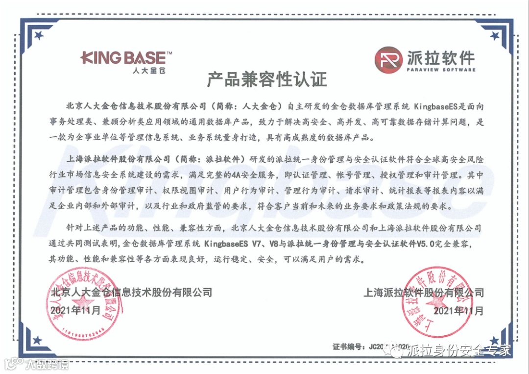 日前,派拉先后与人大金仓数据库管理系统、麒麟软件操作系统完成适配,这标志着派拉在国产化适配的道路上又迈出了关键一步。
