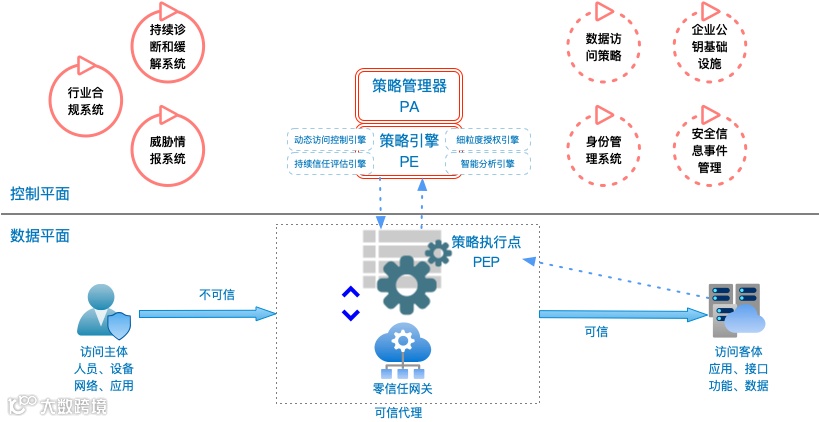 IDaaS身份基础设施作为零信任架构的关键支撑,提供身份管理服务和权限管理服务,以身份为中心进行动态访问控制,并基于全面身份化,为零信任网络的人、设备、应用、系统等物理实体建立统一的数字身份标识和治理流程。