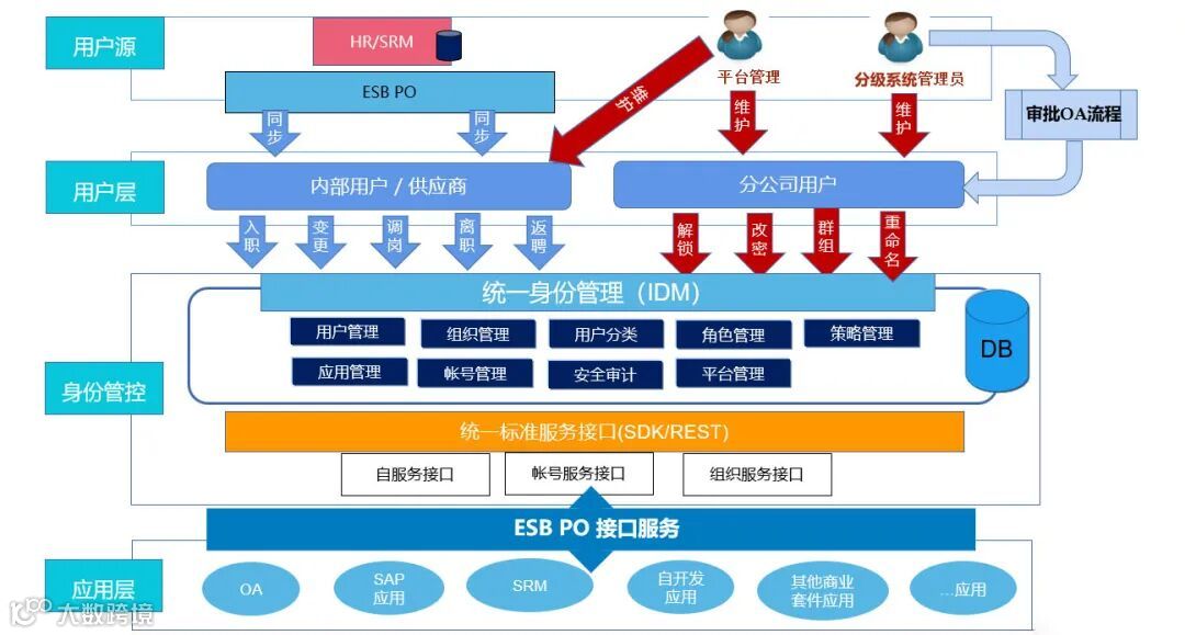 万孚生物成立近30年在不同发展时期建设各类系统,现已建成的SRM、AD、人力资源系统、OA系统等应用系统。由于万孚生物各系统之间分别采用了不同的用户管理体系,用户账号孤立分散在各自的应用系统。员工入职或离职时,需要到不同的系统设置账号权限,或禁用账号,给维护工作带来巨大工作量,一旦有疏漏,将会造成信息的泄露,影响企业信息安全。