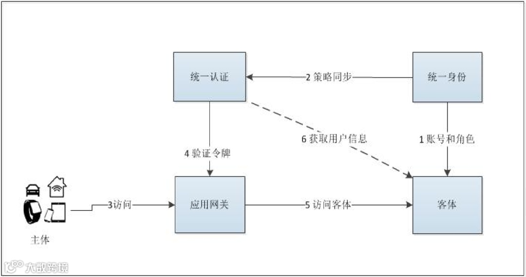 可信设备访问受保护资源前,系统需要通过多因素认证的技术手段对用户身份认证,以确保访问主体身份可信;统一认证通过后进行权限策略决策,基于ABAC的动态授权模型可收集可信设备、用户信息,比如:IP地址、地理位置、访问时间、用户行为习惯、用户岗位属性等作为授权决策依据,为访问主体赋予动态可控的权限。