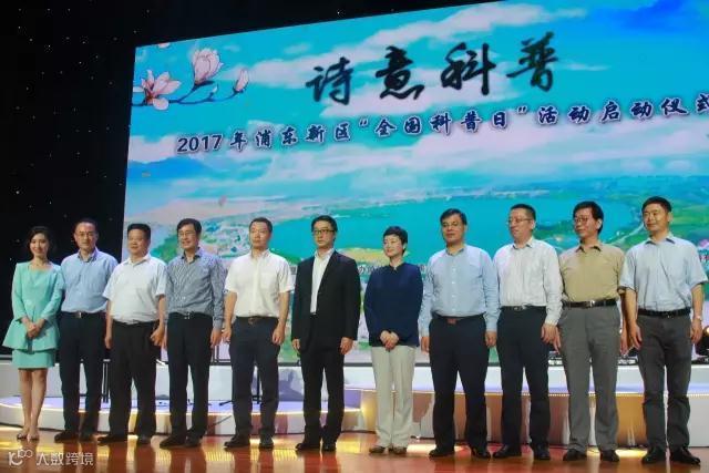 表演结束后是第二批专业科普志愿者代表授聘仪式和“脚印计划——浦东市民科普行”领队授旗仪式。最后,浦东新区区委常委、临港管委会党组书记、常务副主任陈杰宣布2017年浦东新区“全国科普日”活动启动。