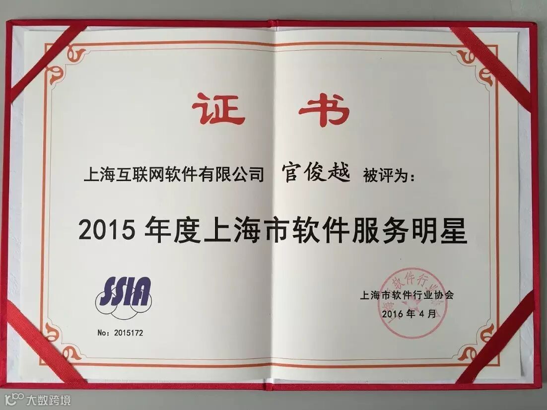 在本次评选活动中,上海互联网软件有限公司(以下简称“上海互软”)两位杰出员工连勇同志和官俊越同志凭借在工作中的出色表现,对软件行业的贡献以及在技术创新方面的成就分别获得了“2015年度上海市软件行业标兵”和“2015年度上海市软件服务明星”的荣誉称号。本次评选活动聚焦上海软件“四名”建设,表彰业内优秀从业人员,树立模范典型,受到了上海软件企业的积极响应和广泛参与。我公司两名员工获此殊荣,不仅是对二人贡献的肯定,也是对上海互软的工作成绩及行业地位的认可。