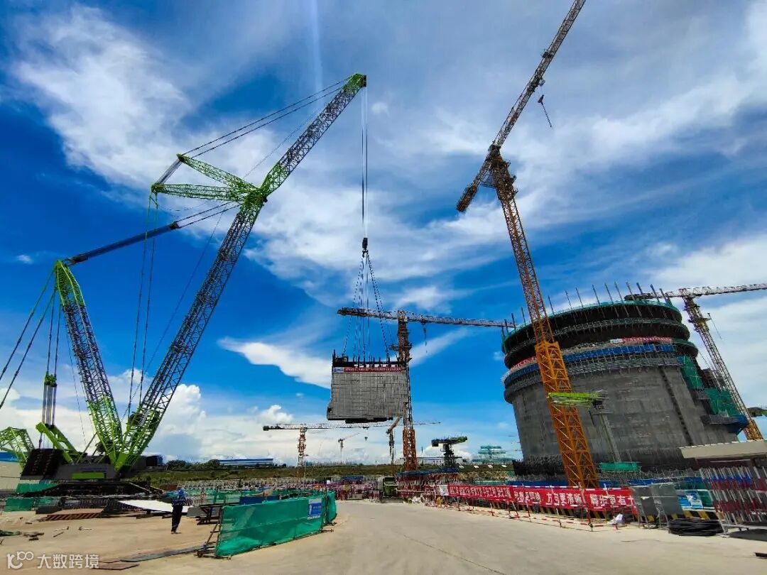 7月8日15时50分,海南昌江核电3号机组堆内构件存放水池顺利吊装就位,标志着核电领域全球首个双相不锈钢水池模块顺利安装完成,为后续核岛堆内构件安装打下坚实基础。