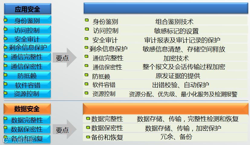 技术要求:物理和环境安全、网络和通信安全、设备和计算安全、应用和数据安全;