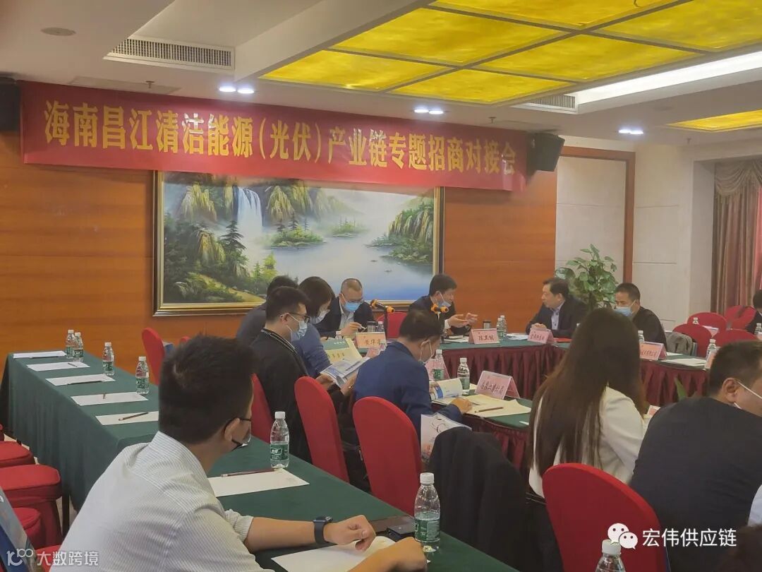 2021年12月16日下午,由昌江黎族自治县人民政府主办,昌江县招商引资服务中心承办的海南昌江清洁能源(光伏)产业链专题招商对接会在海口市康年皇冠酒店五楼玉湖厅召开 , 宏伟供应链董事长吕宏伟受邀参加。