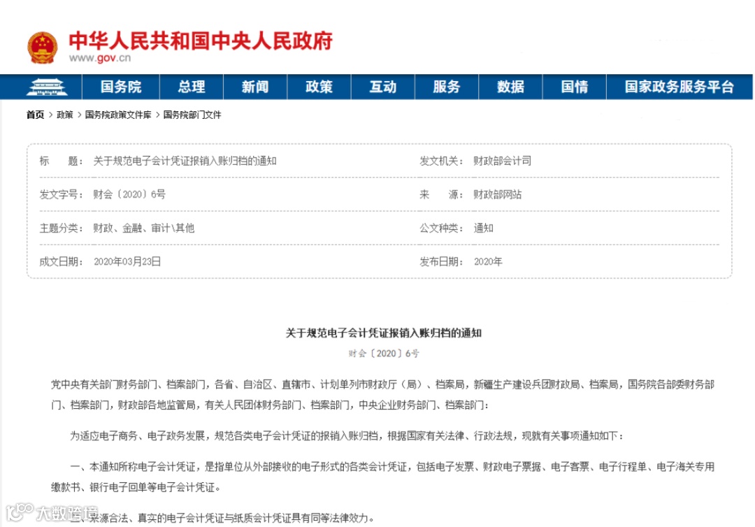 通知下发后,即日起开始施行,即从2020年4月开始,所有企业电子发票原始凭证需要存档。