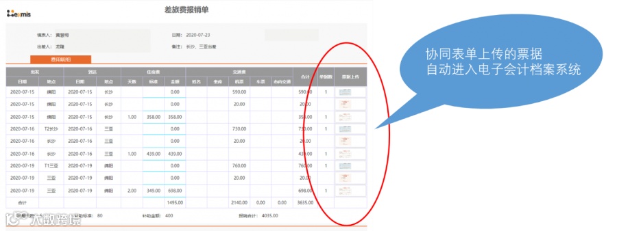配合协同票据管理系统,报销单据方可完成纸电票据的上传、验证,审批通过后自动传递到电子会计凭证档案进行归档。
