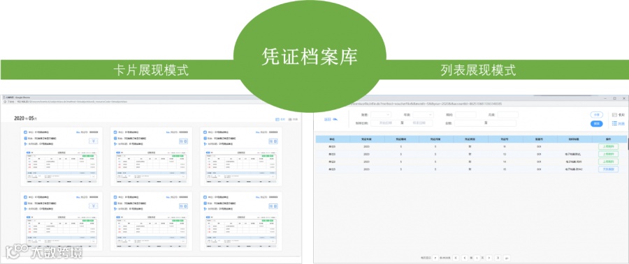 支持按单位、年度、账套对会计档案进行查阅,查询方式可按卡片模式和列表模式进行展现,符合用户操作习惯。