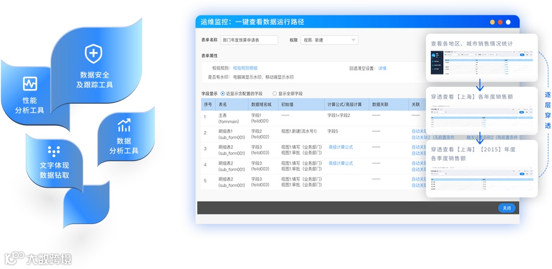 CAP统计报表提升了针对业务数据的分析能力,比如支持自定义钻取穿透设置,让报表更立体、更直观;数据运行路径查看工具支持查看字段值的设置关系,及时了解配置结果同预期的差异。