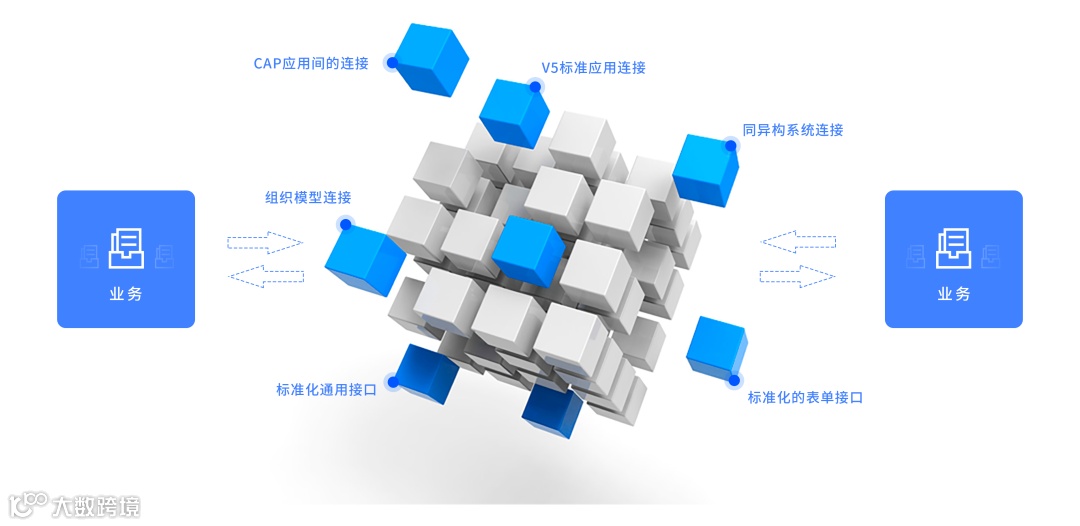 基于数据魔方的标准化接口,为业务和协同之间的基础数据共享提供了参照标准,构建组织主数据、各类标准应用之间的统一连接机制,实现了协同、业务与数据分析体系的一体化管理。