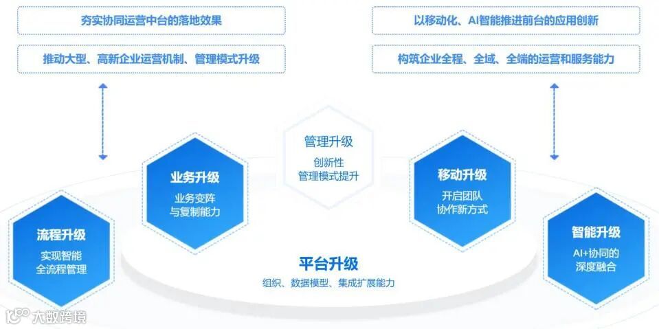 新产品基于中台战略,以平台能力、流程能力、业务能力、管理能力升级夯实中台。