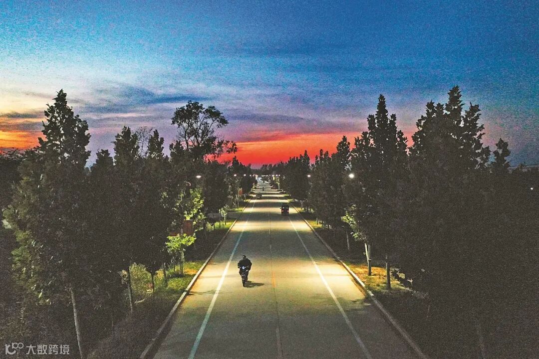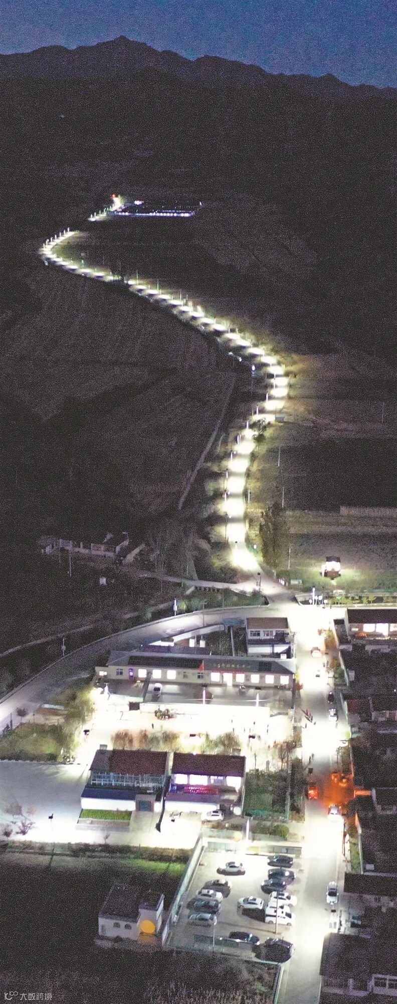 夜晚,路灯照亮下营子村蜿蜒的村道。张静 摄(人民视觉)