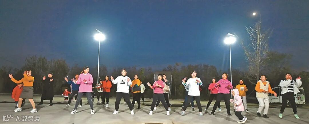 河南省虞城县张庄村小广场,村民在路灯下跳广场舞。人民日报记者 雷声 摄