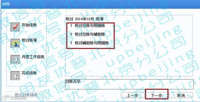 进行总账结账前,请务必保障对账正确,否则结转到下年数据会有错误。