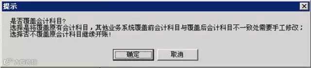如果开账前新年度已存在会计科目,重新做开账,系统会提示是否覆盖会计科目,如果选择是,会自动将新年度会计科目更新为上年度科目,如在上年度调整过会计科目,此时旧年度对科目的调整就会影响新年度会计科目,并且如果在新年度对科目做了调整,会把新年度对科目的调整覆盖,相当于新年度科目没有调整;如果选择否,将会保留新年度会计科目不变。但是如果在其他业务系统存在覆盖前会计科目和覆盖后会计科目不一致的情况,就需要手工到各业务系统修改会计科目。故有此提示,要慎重选择。