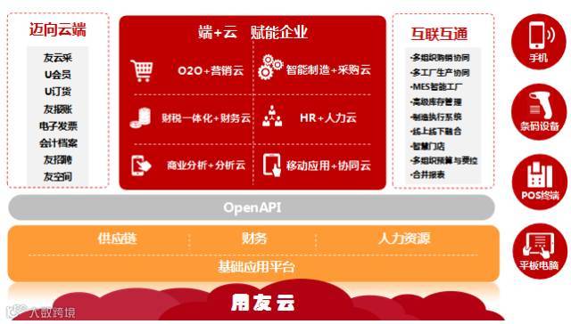 用友U8+V13.0以OpenAPI为平台,一站式提供财务、营销、智能制造、人力资源、移动应用、商业分析及各行业的端+ 云服务,可以为中型企业构造多组织业务管控平台、支持多工厂制造协同、通过直连最终用户实现数字化营销、通过智能物联网驱动智能制造(WMS、MES、条码)、通过财务智能化实现社会化财务(电子发票、电子会计档案、友报账)、通过全领域的移动应用与商业分析支持企业实时化经营、全方位推动企业创变升级。