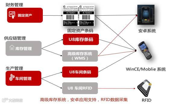 U8+条码覆盖了资产盘点、仓储、车间、货运现场的条码扫描等企业各个环节的应用。支持条码安卓、WinCE/Moblie智能终端设备。
