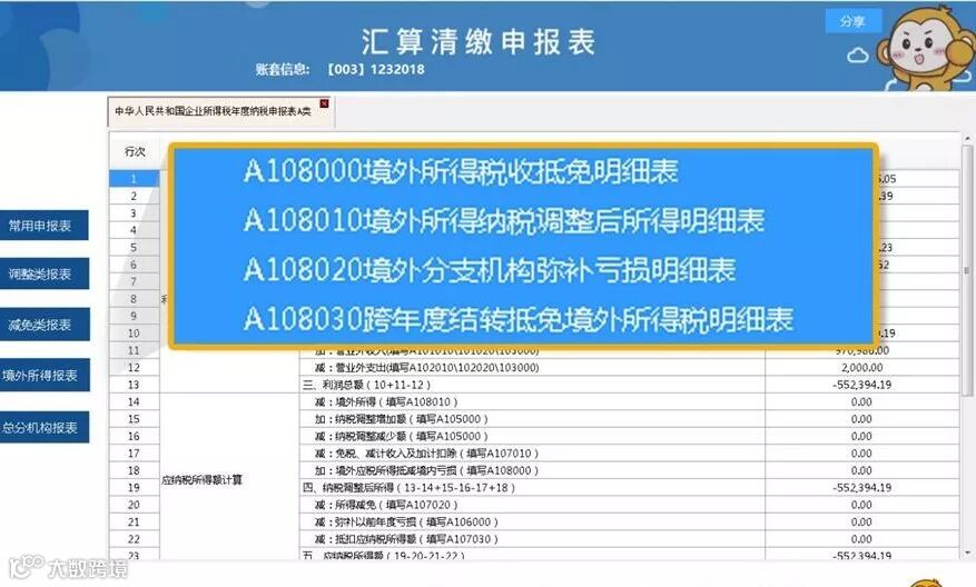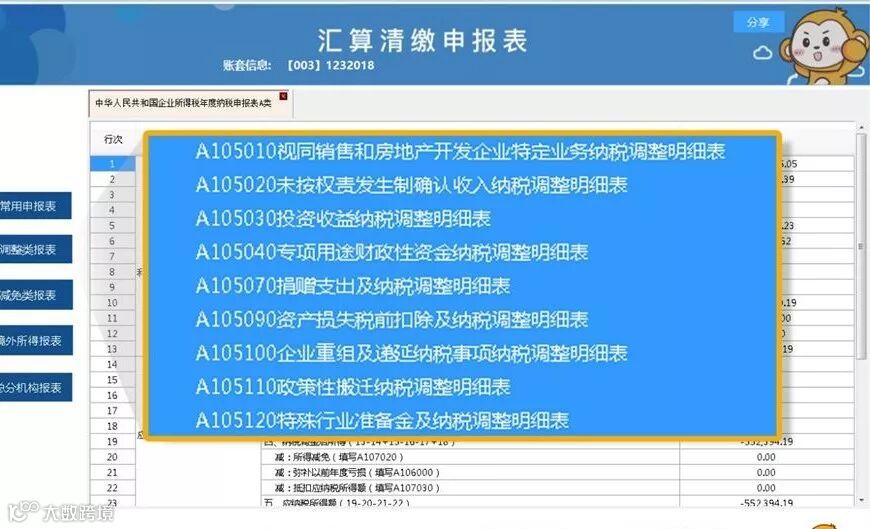 5、 企业所得税汇算清缴申报表内置33张申报表,大家可以根据企业实际情况,选择不同申报表填写,手工填写后,点击【重新计算】,数据会自动汇总到所需申报表中。