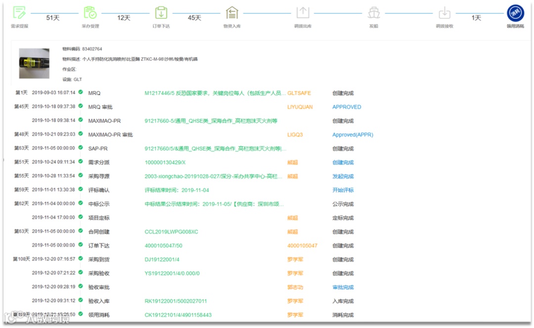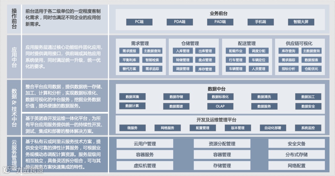(4)数据驱动常态化:物资供应链数字化管理平台是以数据驱动为核心价值体现,使得企业获得供应链服务本身外的供应链等精益改善,如利用供应链的数据实现需求计划、库存管理、运输配送等智能预测与提前物流资源调度。