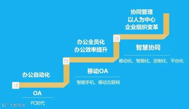 向奇汉认为,办公软件经历了三个阶段,第一阶段是OA,即办公自动化;第二阶段是移动OA,主要特点是办公全员化和办公效率的提升;第三阶段是智慧协同,主要特点是以人为中心的企业组织变革,带来的是企业管理的移动化、智能化、定制化、平台化。
