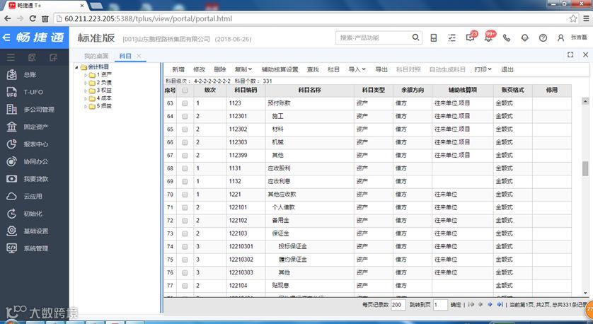 集团公司和子公司都使用统一的科目档案,集团下发科目档案给各子公司,各子公司不允许修改一级科目,可以增加下级科目,可以修改一级科目辅助核算项。