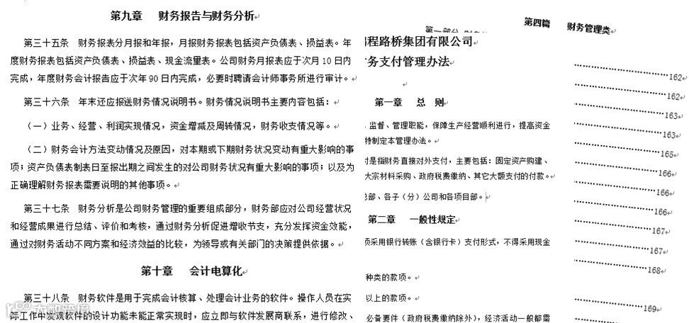 为使集团及各子公司财务核算使用统一标准,程鹏集团编写了财务相关制度,按要求对照执行。