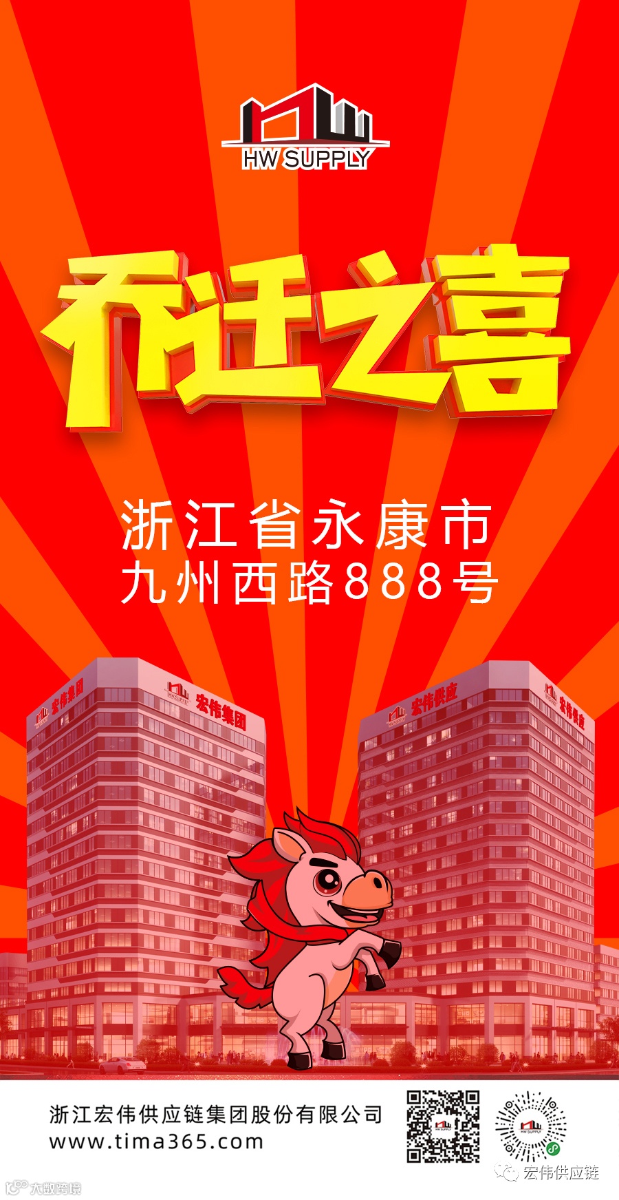 2021年5月6日上午,宏伟供应链集团总部圆满乔迁,由原来的永康市金州大厦29楼迁至新址:浙江省永康市九州西路888号,这是宏伟供应链发展历程中又一重要里程碑,以全新面貌开启了全新篇章!