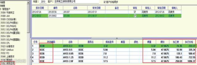 电线电缆产品的价格,直接跟随原材料铜价市场的变化而变化。通过梳理产品报价逻辑,建立了原材料价格变动跟产成品销售价格直接的联动关系;规范了企业价格管理流程,大大降低了报价产生的成本利润风险。客户提供的客户方产品信息,直接跟企业方ERP平台的基础档案打通,形成内外协同的基础资料管理平台。根据市场原材料单价,结合料工费的消耗比例,归集分摊计算出来的产成品报价数据,经过公司各级领导审批生效,形成具体客户的价格表。