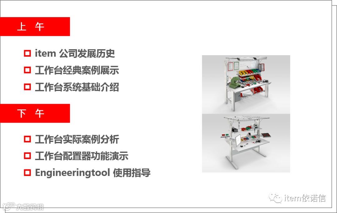 经过 20 多年的积累, 如今,item 的工作台系统已经成为一个相当庞大的系统,因此我们安排了一整天的课程。从公司的发展历史开始,逐步展开讲解产品细节,还会现场演示 item 灵活的工作台配置器。
