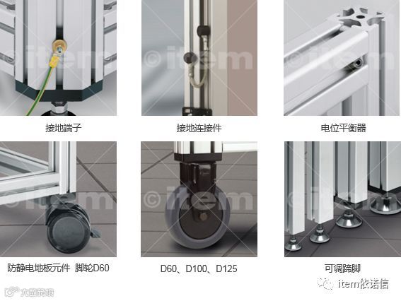 得益于 item 铝型材的产品设计,丰富的产品线,从工作台立柱、工作表面到输送推车和流利条,可为工作环境的各个方面提供正确的防静电保护。
